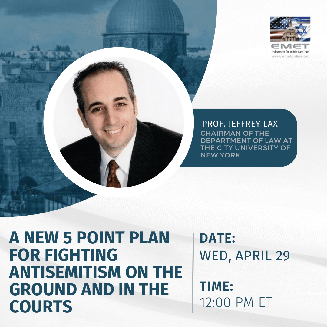 A New 5 Point Plan for Fighting Antisemitism on the Ground and in the Courts Professor Jeffrey Lax,  Chairman of the Department of Law at the City University of New […]